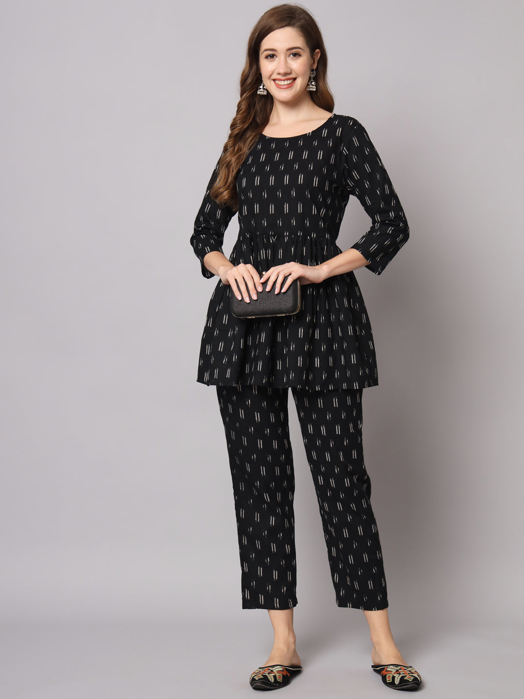 Multicolor Printed Cotton Top with Trouser Co-Ord Set