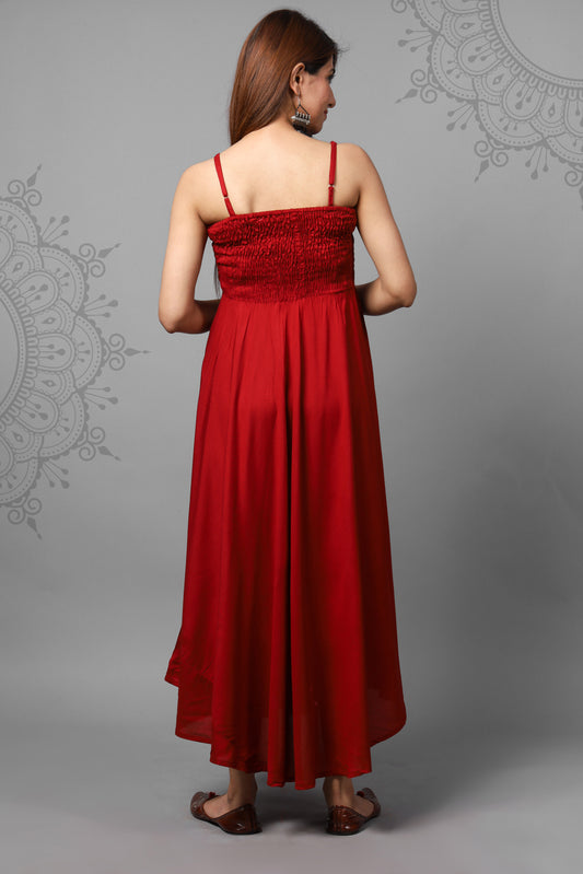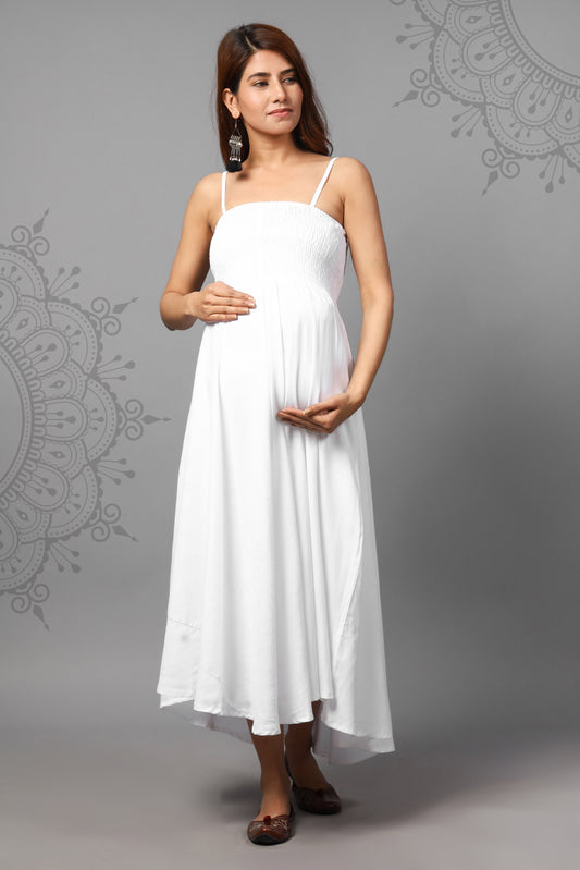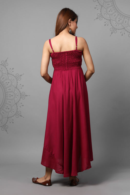 Solid Maroon Color Shoulder Straps Maternity Gown