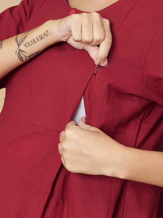 Maroon Abstract Printed Maternity Co-Ord Set with Zip