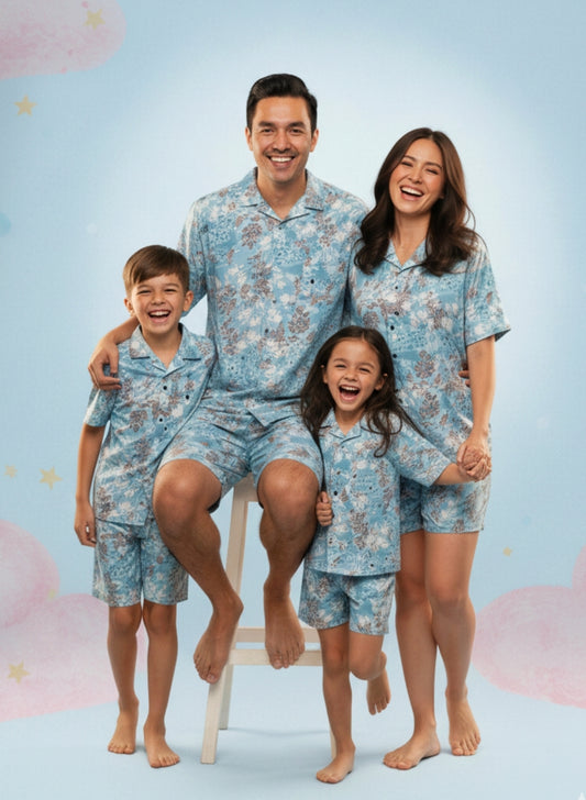 Family Matching Co Ord Set –Pool Party Combo Sky Blue– Printed