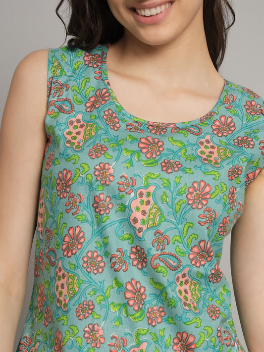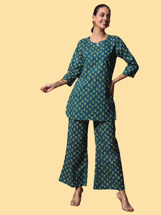 Teal Green Flower Printed Cotton Co-Ord Set(47% OFF)Regular price ₹ 1,299Sale price ₹ 1,299 Regular priceUnit price / per₹ 2,490Sale