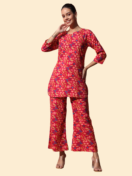 Rani Pink Flower Printed Cotton Co-Ord Set with Pallazo(58% OFF)Regular price ₹ 1,045Sale price ₹ 1,045 Regular priceUnit price / per₹ 2,490Sale